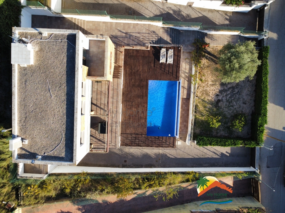 Next to the garage, there is a large storage room and the pool machinery room. The house has an elevator with access from all three floors and is equipped with double-glazed windows, ducted air conditioning on the upper floor and individual air conditioning in the living room and bedroom, oil-fired central heating, and security cameras.