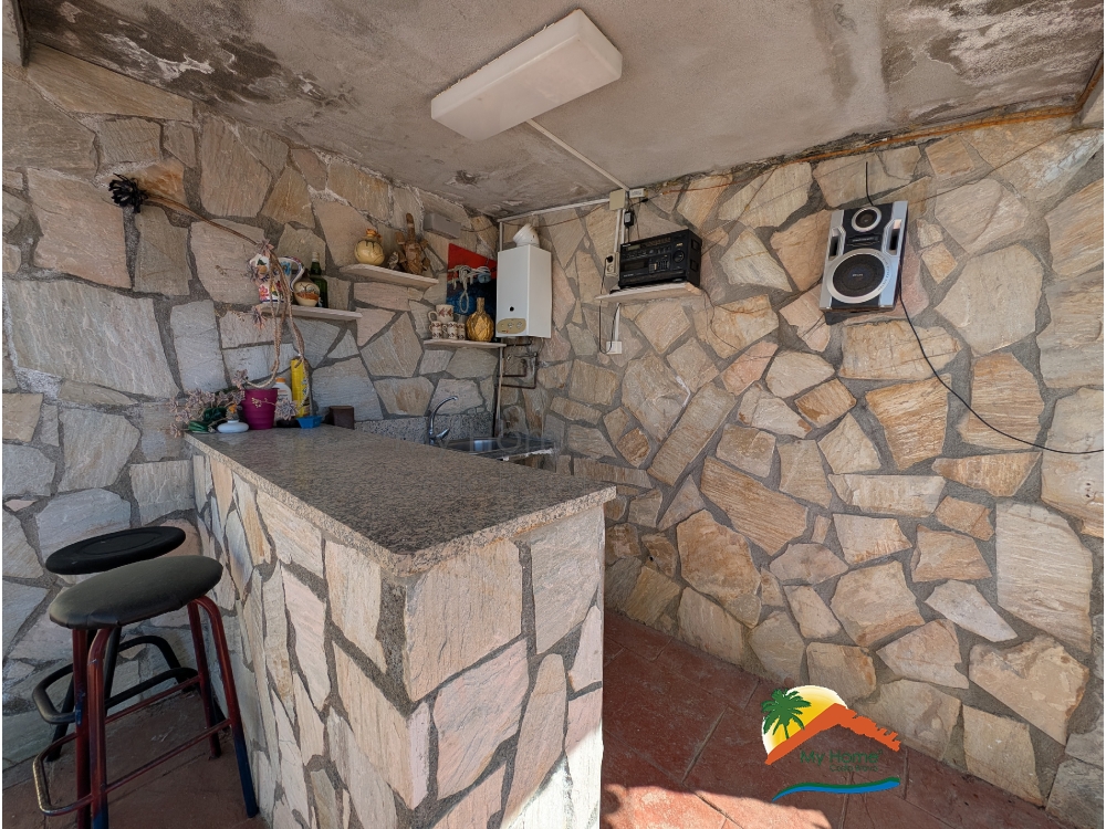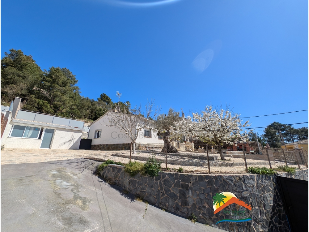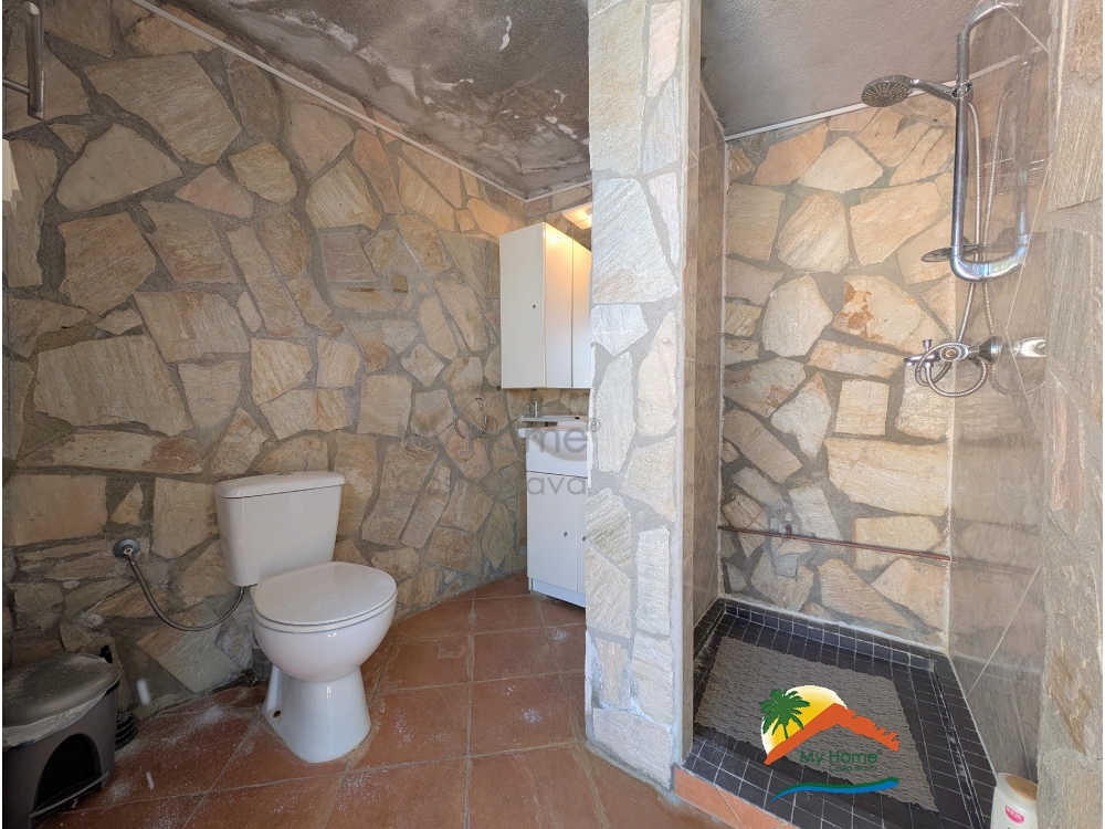 The house was built in 2001 and is equipped with 26 solar panels for electricity, central heating powered by diesel, and a garage for 1 car with a laundry area.