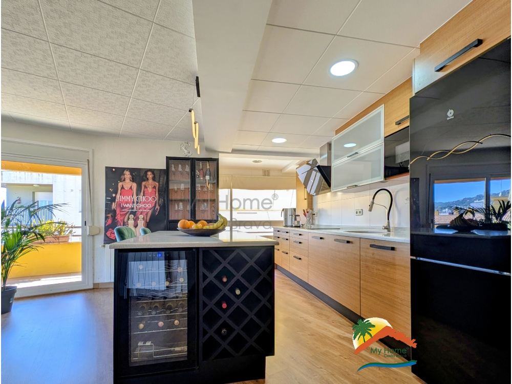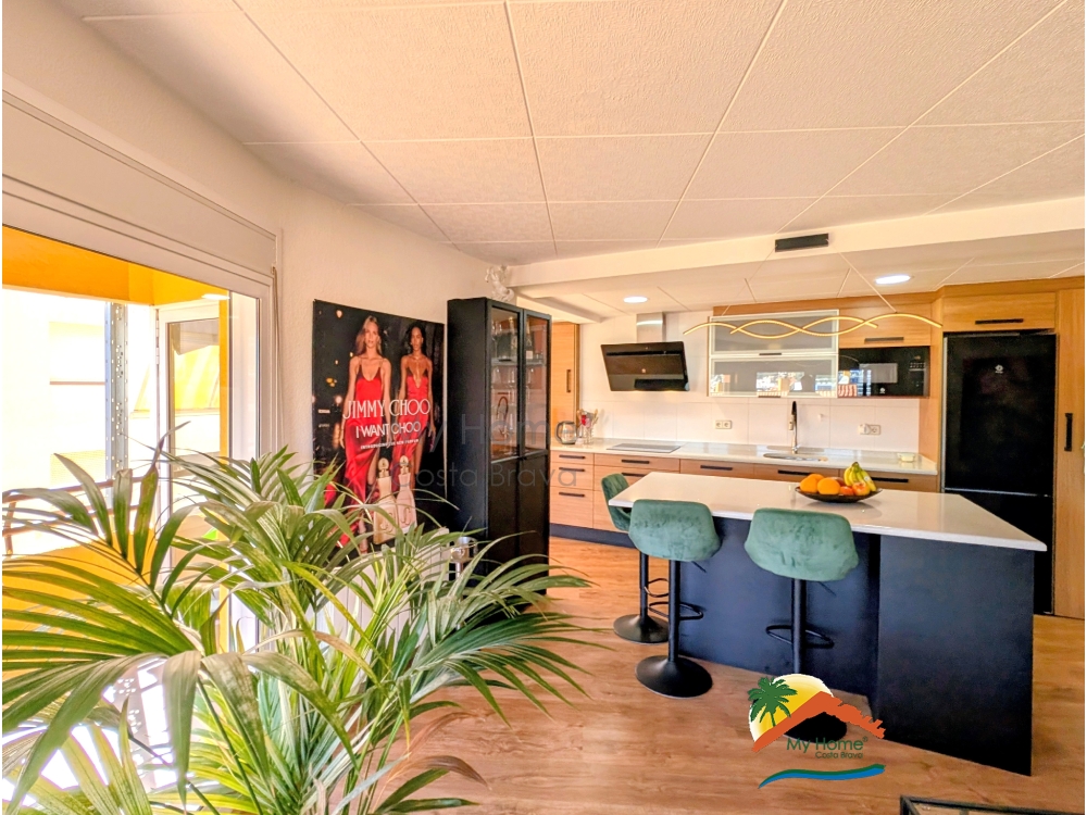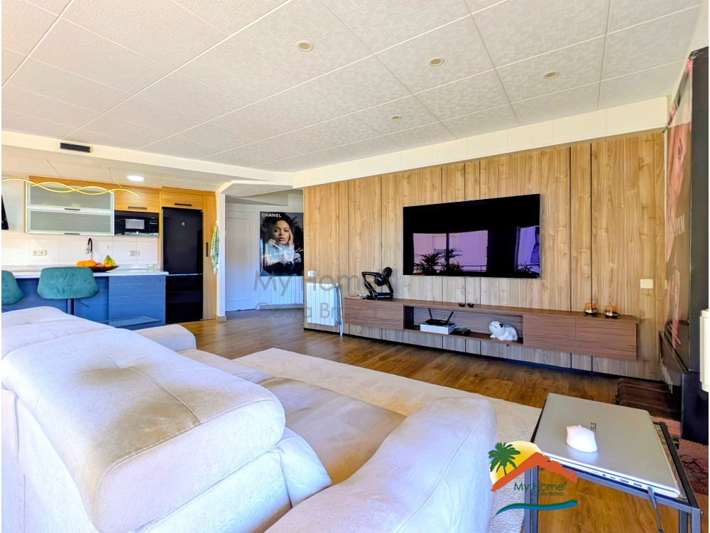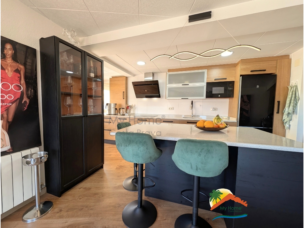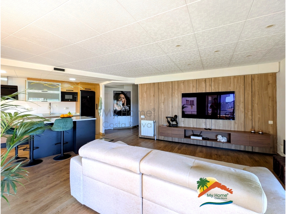 My Home Costa Brava vous présente en exclusivité ce spectaculaire appartement de plus de 102 m2, un bijou récemment rénové avec des matériaux de haute qualité et une conception pensée pour maximiser l'espace et la luminosité. Le logement impressionne dès le premier instant par son excellente distribution, avec un salon-salle à manger de plus de 35 m2 qui s'intègre à une cuisine ouverte moderne au design contemporain, équipée d'un îlot central et d'électroménagers haut de gamme.