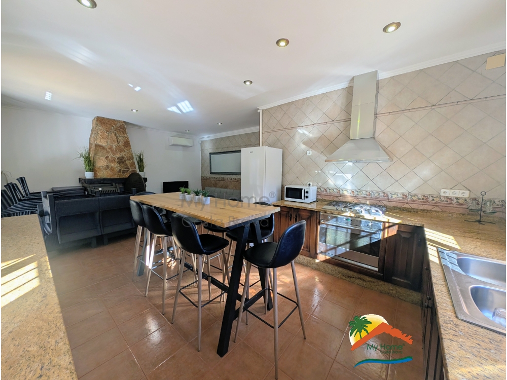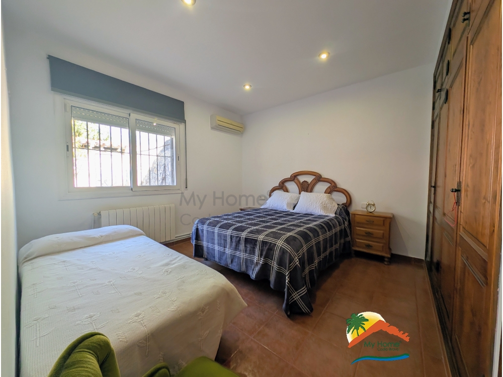 De hoofdwoning beschikt over 3 ruime tweepersoonsslaapkamers, een badkamer met douche en een lichte woonkamer met open keuken, met directe toegang tot het zwembadgedeelte – ideaal om te ontspannen en te genieten van het buitenleven.
