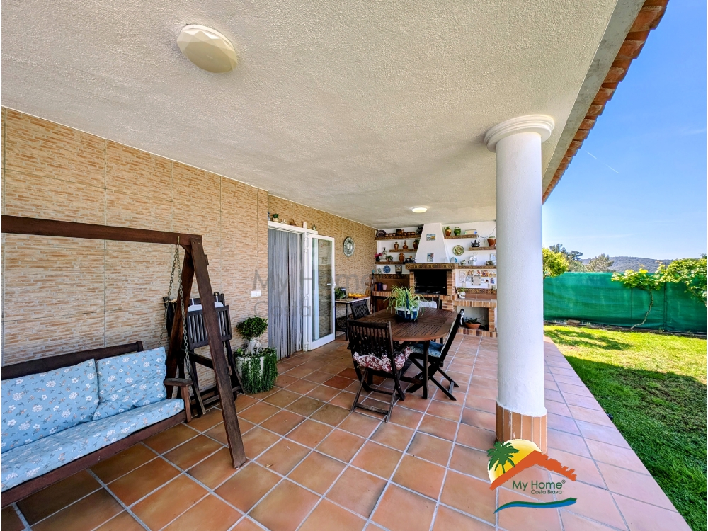 My Home Costa Brava presenteert deze prachtige woning van 158 m², een uitstekende kans voor zowel permanente bewoning als investering, met de mogelijkheid om een toeristenvergunning te verkrijgen in Aiguaviva Parc. Op de begane grond vinden we een lichte woon-eetkamer met pre-installatie voor een open haard, een complete badkamer met douche, een aparte keuken met toegang tot een overdekt terras met barbecueplaats, twee tweepersoonsslaapkamers en een praktische berging. De bovenverdieping beschikt over vier slaapkamers met inbouwkasten, twee terrassen met vrij uitzicht op de bergen en een complete badkamer met ligbad. De woning is voorzien van houten en aluminium kozijnen (enkel en dubbel glas), evenals airconditioning en verwarming op olie, wat het hele jaar door comfort garandeert. Buiten ligt de woning op een volledig vlak en goed onderhouden perceel van 369 m². Het beschikt over diverse terrassen, een overdekte chill-out ruimte met barbecue en een tuin met fruitbomen. Daarnaast is er de mogelijkheid om een zwembad te bouwen. Gelegen in een rustige straat, biedt het huis vrij uitzicht op groene zones en veel privacy. Het ligt op slechts 10 minuten van Lloret de Mar en de stranden, 10 minuten van Vidreres en 25 minuten van de luchthaven Girona-Costa Brava. Mis deze kans niet. Neem contact met ons op voor meer informatie en om een bezoek te plannen!
